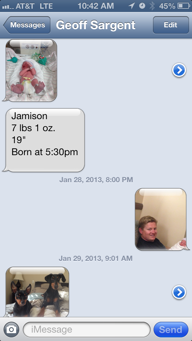 Jameson Edward Riley Sargent joined our Family on January 28, 2013 at 5:30 PM